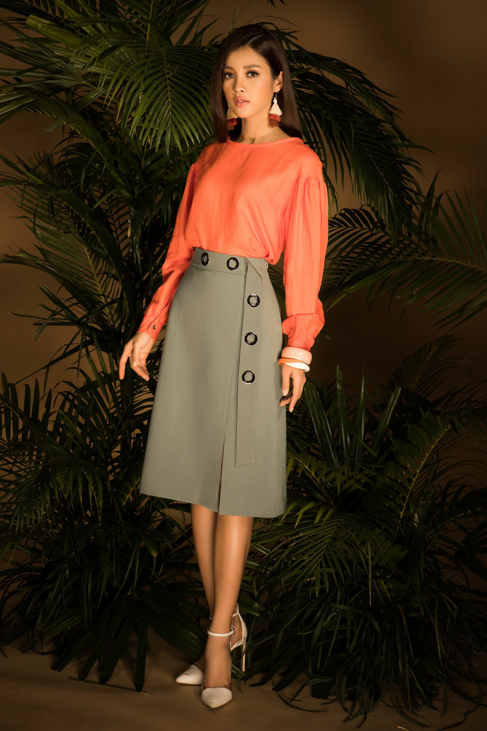 Bên cạnh đầm liền, cách phối áo kiểu cùng chân váy cũng là combo được Mỹ Duyên gợi ý cho nàng công sở.