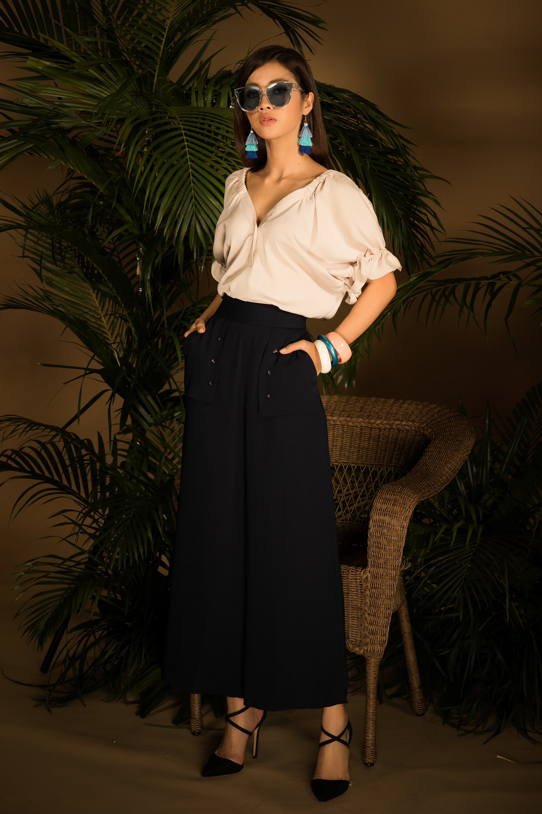 Ngoài phối cùng chân váy, cách mặc áo kiểu cùng quần cũng được nhiều cô nàng yêu thích bởi tính tiện dụng, dễ dàng hoạt động mà không phải lo rơi vào hoàn cảnh “hớ hênh”.
