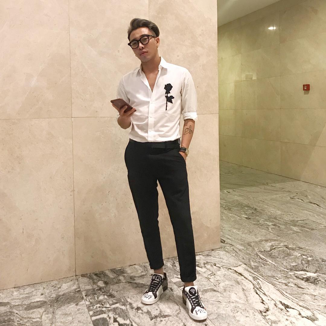 Không hổ danh là “stylist hàng hiệu”, tuy trưng diện bộ cánh basic gồm áo sơmi trắng cùng quần tây đen và giày thể thao. Nhưng tất cả các items mà Hoàng Ku đang sử dụng đều thuộc thương hiệu nhà mốt nước Ý, Dolce & Gabbana danh tiếng.