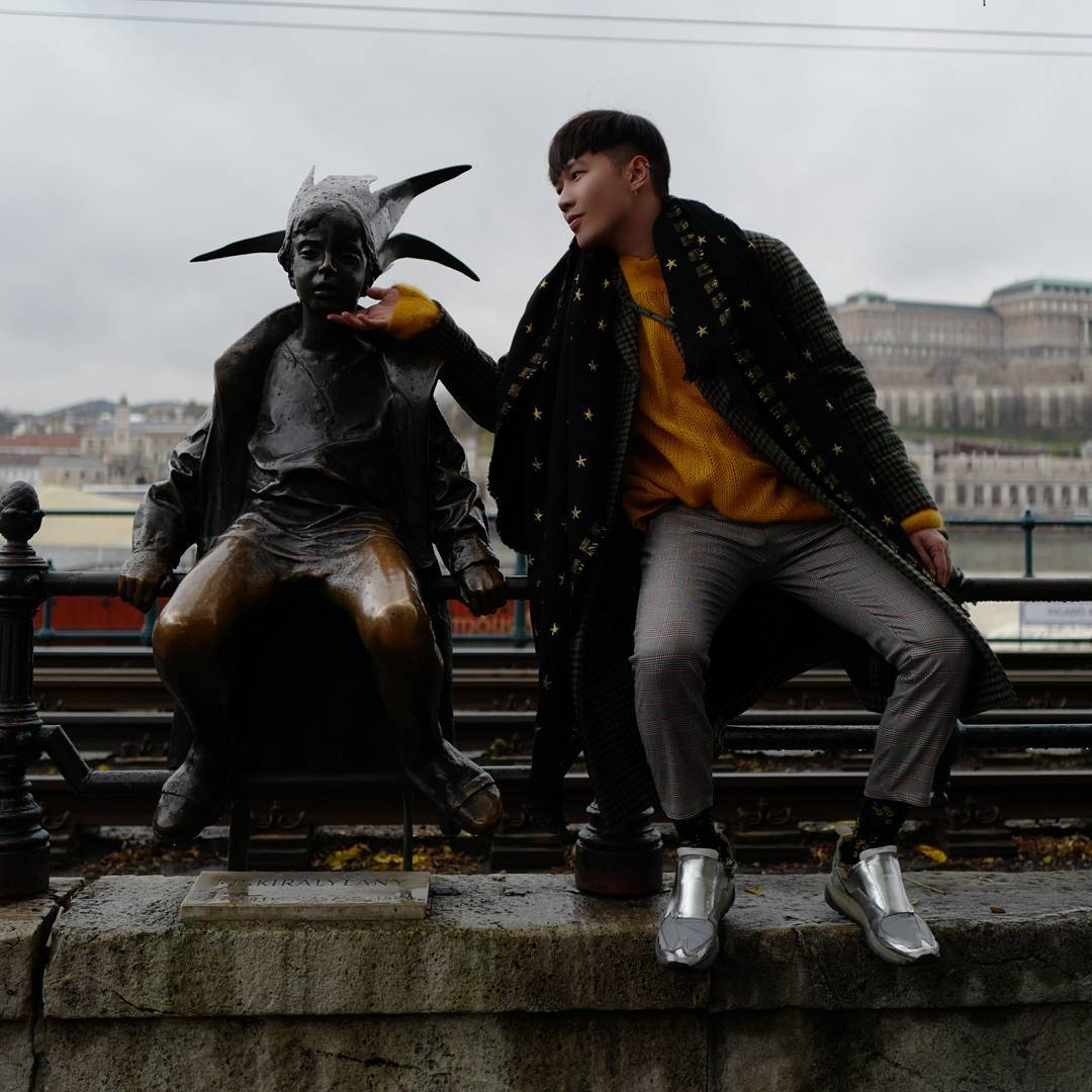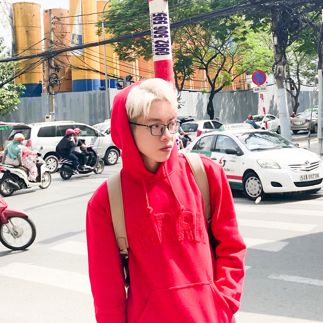 Đức Phúc lại lựa chọn chiếc áo hoodie đỏ nổi bật khi xuống phố. Từ sau khi giải phẫu thẩm mỹ, “nam thần dao kéo” ngày càng nhận được nhiều đánh giá tích cực về gout ăn mặc của mình.