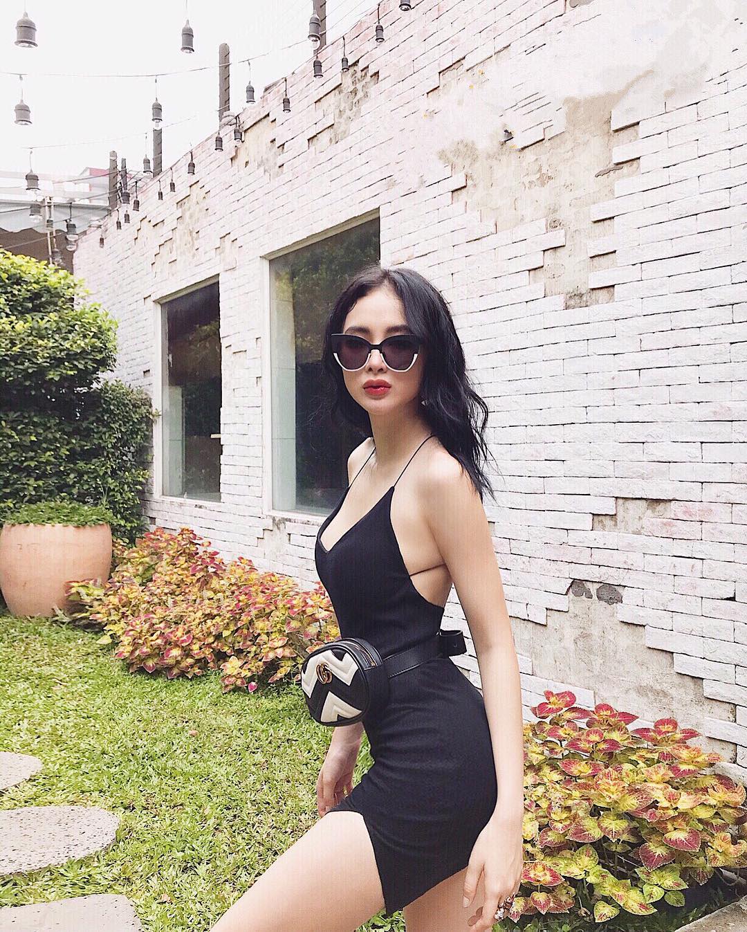 Diện chiếc váy 2 dây có đường cắt nách sâu khoe vòng 1, Angela Phương Trinh tiếp tục chứng tỏ danh hiệu “mỹ nhân mặc hở của làng điện ảnh”. Bộ cánh sexy được nữ diễn viên phối cùng túi bumbag và kính mát của thương hiệu Gucci đắt giá.