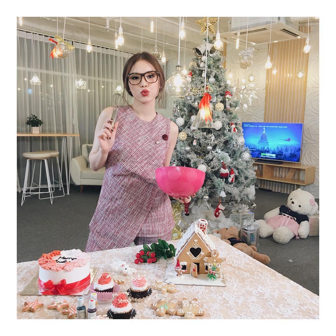 Tông hồng “bánh bèo” chẳng thể làm khó được nàng hotgirl mà ngược lại càng tôn lên nước da sáng và gương mặt khả ái.