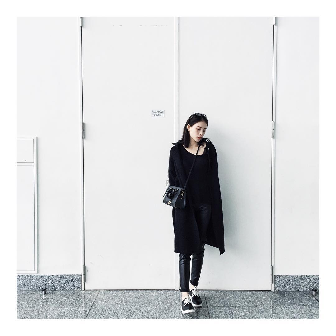 Dù chọn phong cách nữ tính hay cá tính, trang phục đen luôn là must-have item trong tủ đồ của mọi cô nàng. Đối với cách mix - mtach all black, tùy với từng cách kết hợp trang phục khác nhau, Linh Rin luôn ghi điểm với vẻ ngoài sang trọng, cá tính nhưng vẫn đảm bảo nét dịu dàng chẳng lẫn vào đâu được.