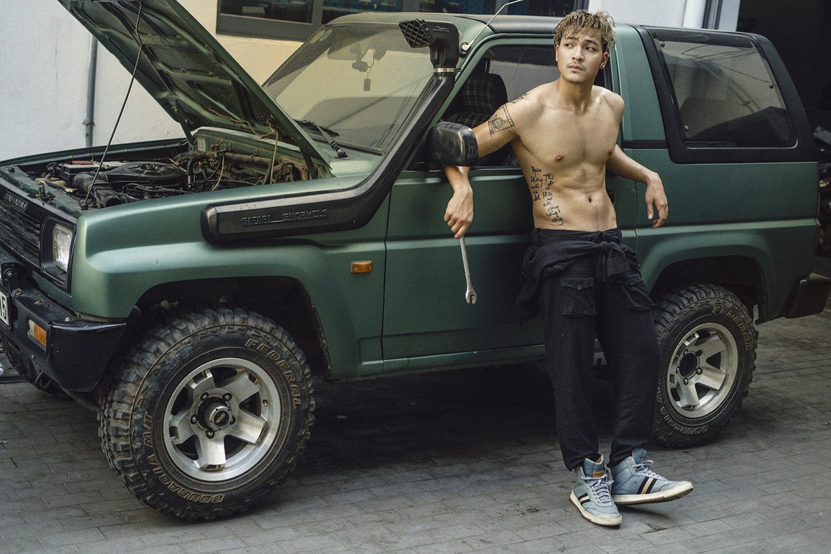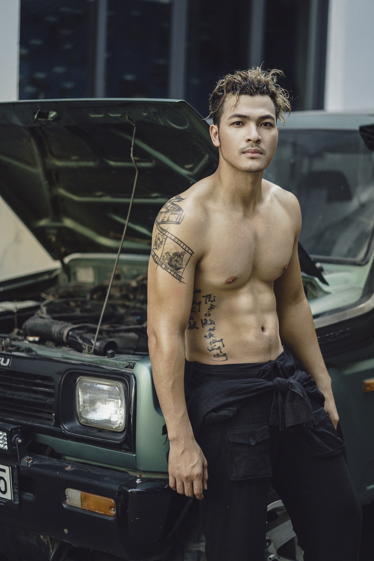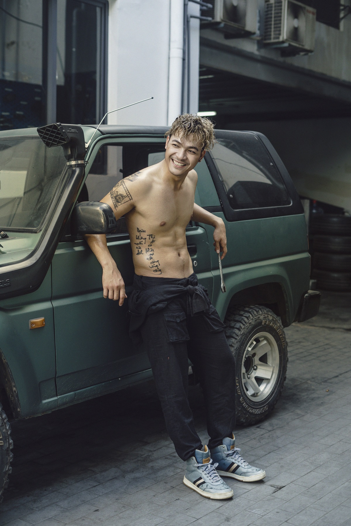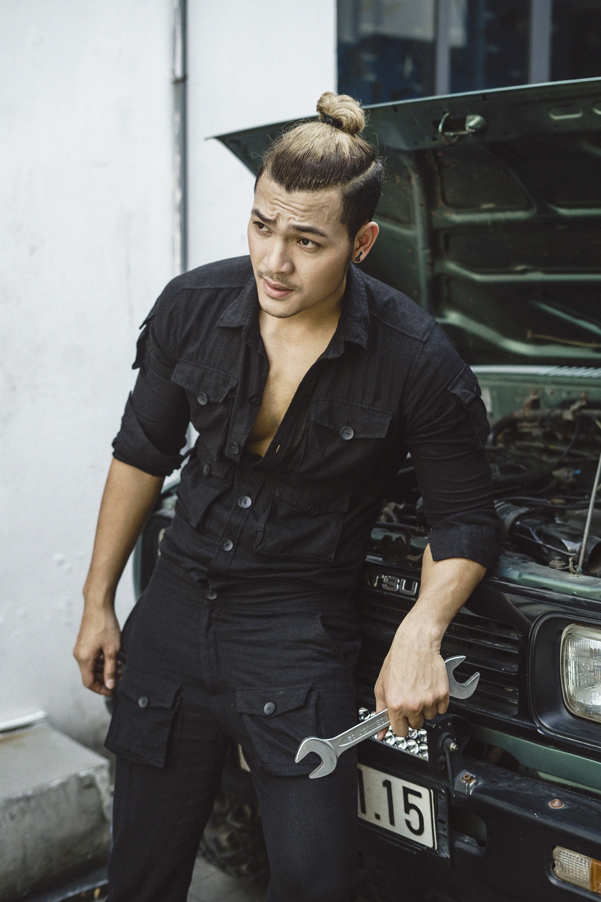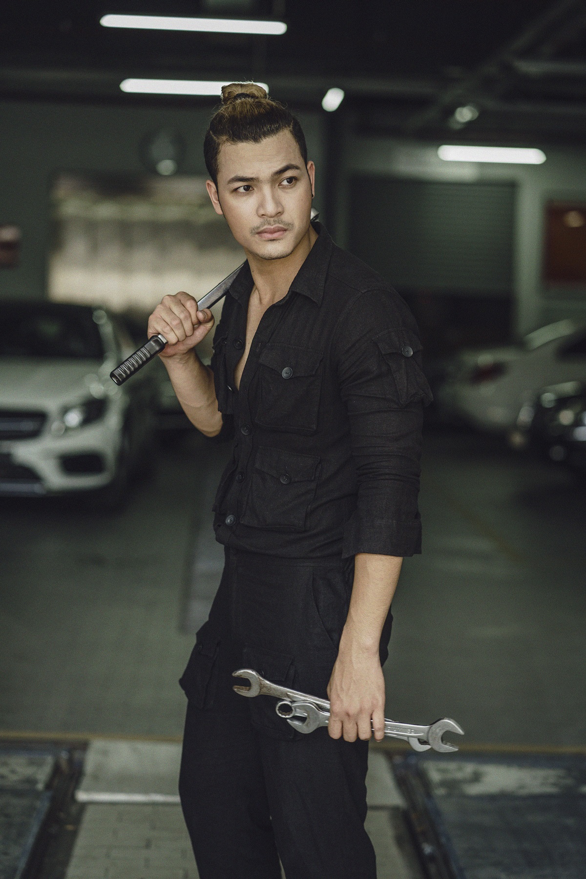 Anh hóa thân thành một chàng công nhân rắn rỏi, nam tính.