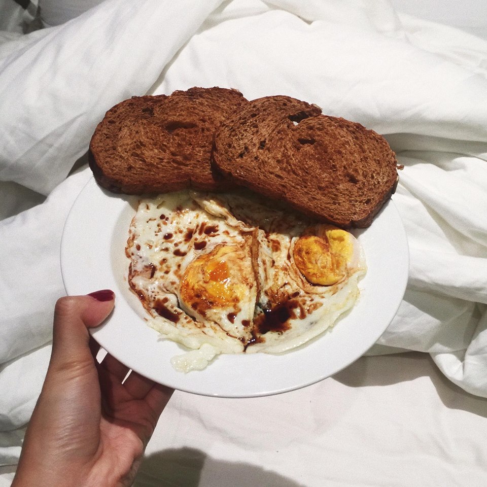 Với bữa sáng là trứng ốp la và bánh mì. Cô nàng khuyến khích ăn bánh mì đen để đẹp hơn nữa nhé!