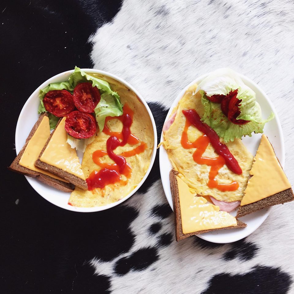 Mỗi bữa ăn chỉ có từng này mới thấy sự quyết tâm của cô nàng đang “tuổi ăn tuổi chơi” lớn đến mức nào. Bạn có dám đánh đổi pizza, bún, cơm…bằng 2 lát bánh mì với phomai và trứng thế này không?