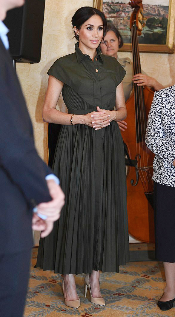 Chiếc đầm Oscar de la Renta trị giá 300 triệu VNĐ này là trang phục đắt nhất Công nương Meghan diện trong chuyến công du.