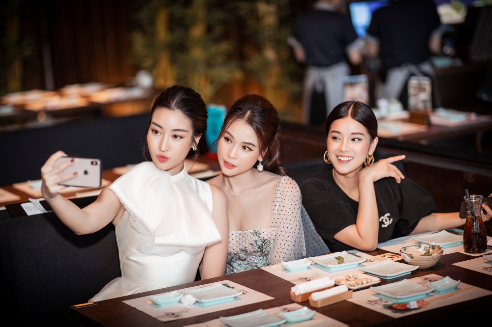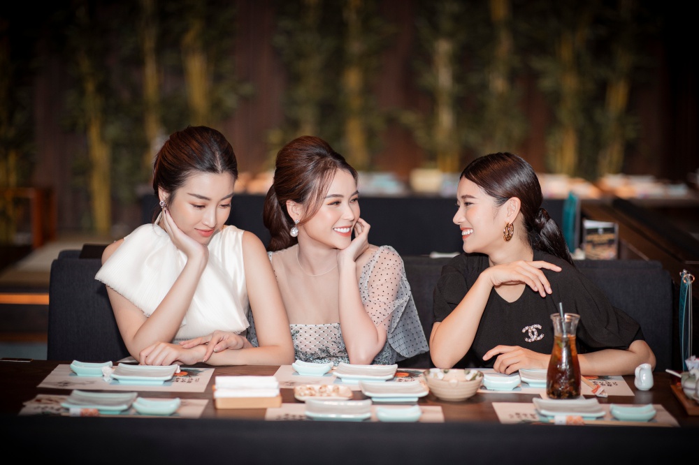 Tại sự kiện này, Sam có dịp hội ngộ với Hoa hậu Việt Nam 2016 - Đỗ Mỹ Linh và nữ diễn viên Hoàng Yến Chibi. Nếu Đỗ Mỹ Linh thanh lịch cùng váy trắng thì Hoàng Yến Chibi lại khoe cá tính trong trang phục đen. Khi ngồi cạnh 2 cô bạn đồng nghiệp, Sam vui vẻ chuyện trò. Vốn là người thân thiện, cô thoải mái chia sẻ với Đỗ Mỹ Linh - Hoàng Yến Chibi về sở thích ăn uống của mình.