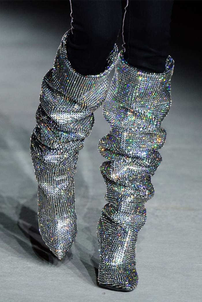Giày boots nếp gấp đính pha lê lấp lánh của thương hiệu YSL gây sốt giới mộ điệu.