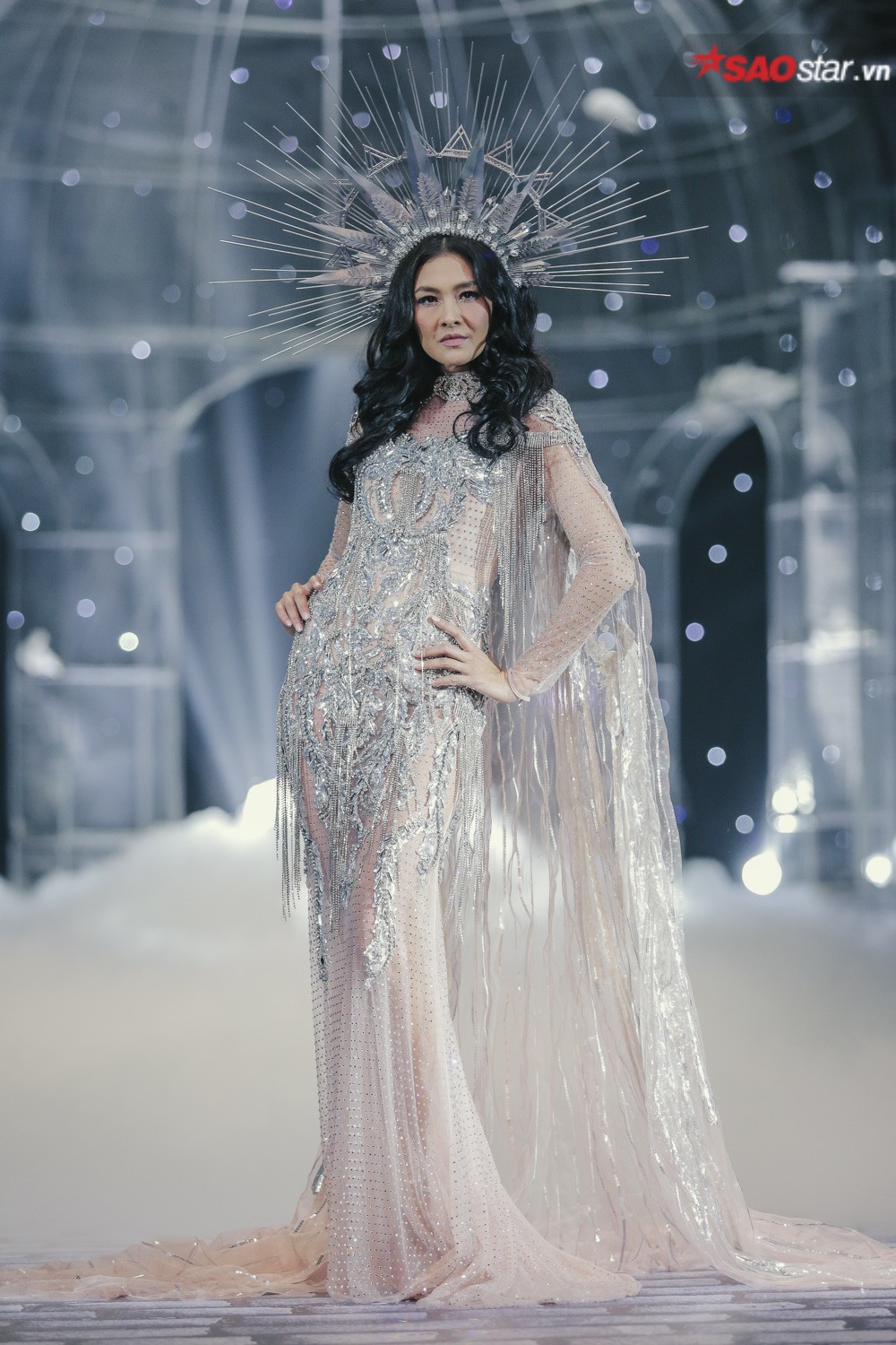 Đêm diễn khép lại với sự xuất hiện của Lukkade - vị “nữ thần” quyền lực trong ngành giải trí Thái Lan. Diện đầm đuôi cá ôm sát khoe trọn vóc dáng, đầu đội chiếc mão được thiết kế công phu, nữ diễn viên, siêu mẫu sinh năm 1972 như một vị thần mặt trời uy nghi đầy quyền lực.
