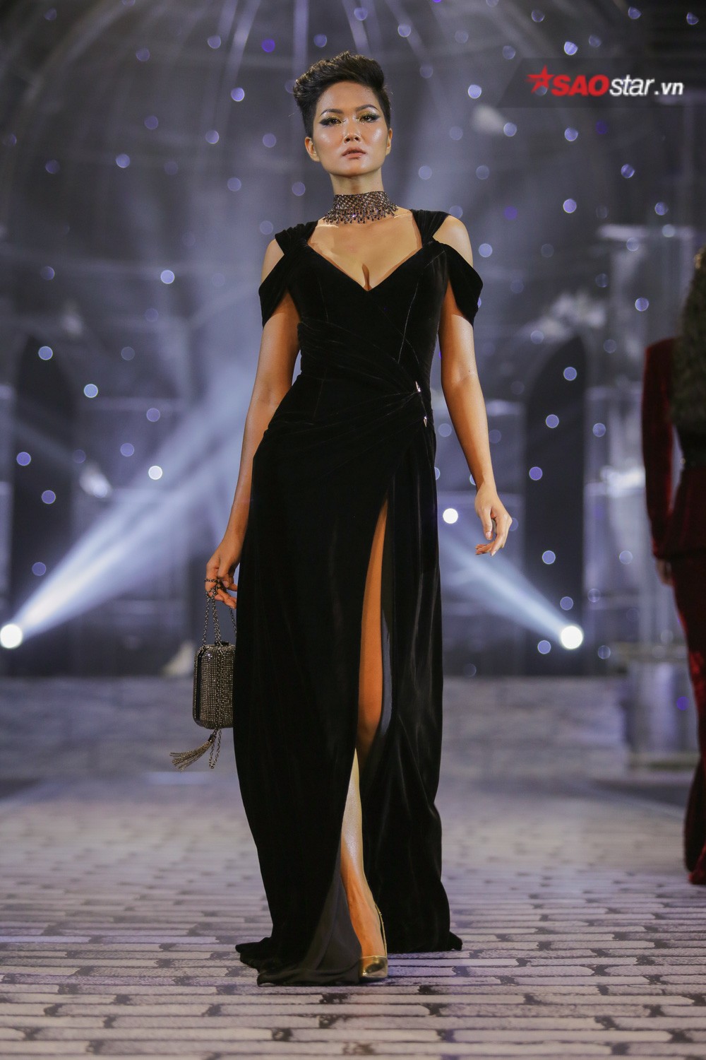 Không thể thiếu những chiếc váy với đường xẻ cao quyến rũ, khoe đôi chân dài bất tận.