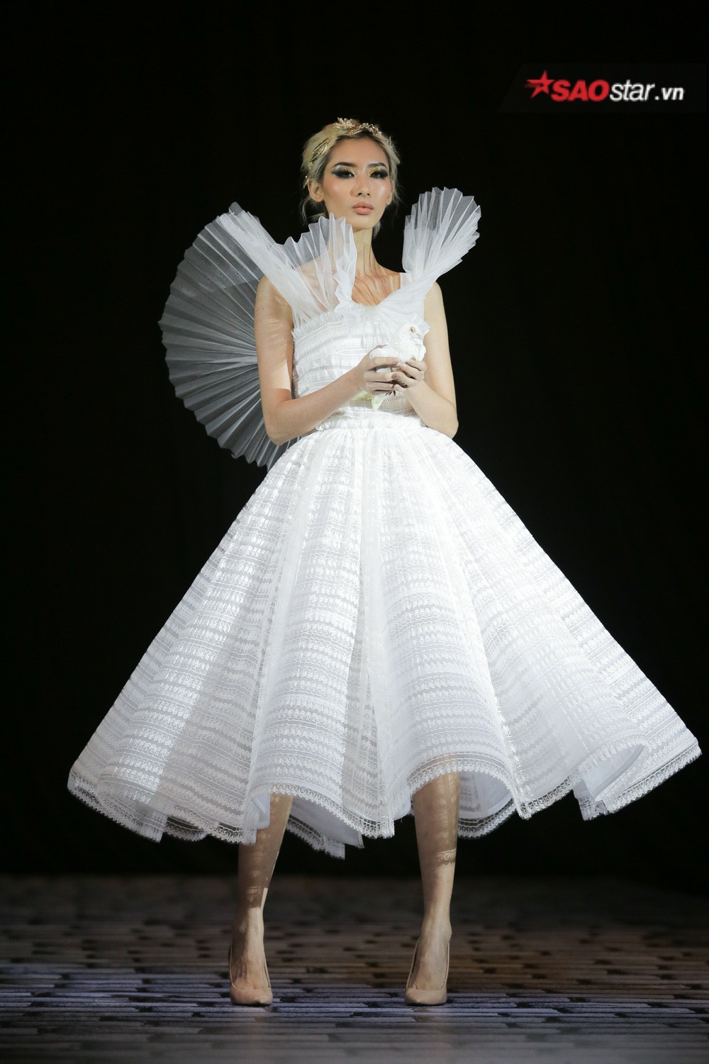 Phần 2 của buổi diễn bắt đầu với những bước đi khoan thai của người mẫu Hắng Nguyễn. Cô diện chiếc váy voan trắng, trên tay cũng đang cầm một chú chim bồ câu trắng, hình ảnh khiến nhiều người liên tưởng đến “Nữ thần hòa bình”.