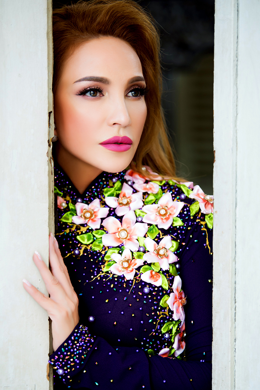 HLV The Voice Thanh Hà xinh đẹp trong tà áo dài đỏ thắm