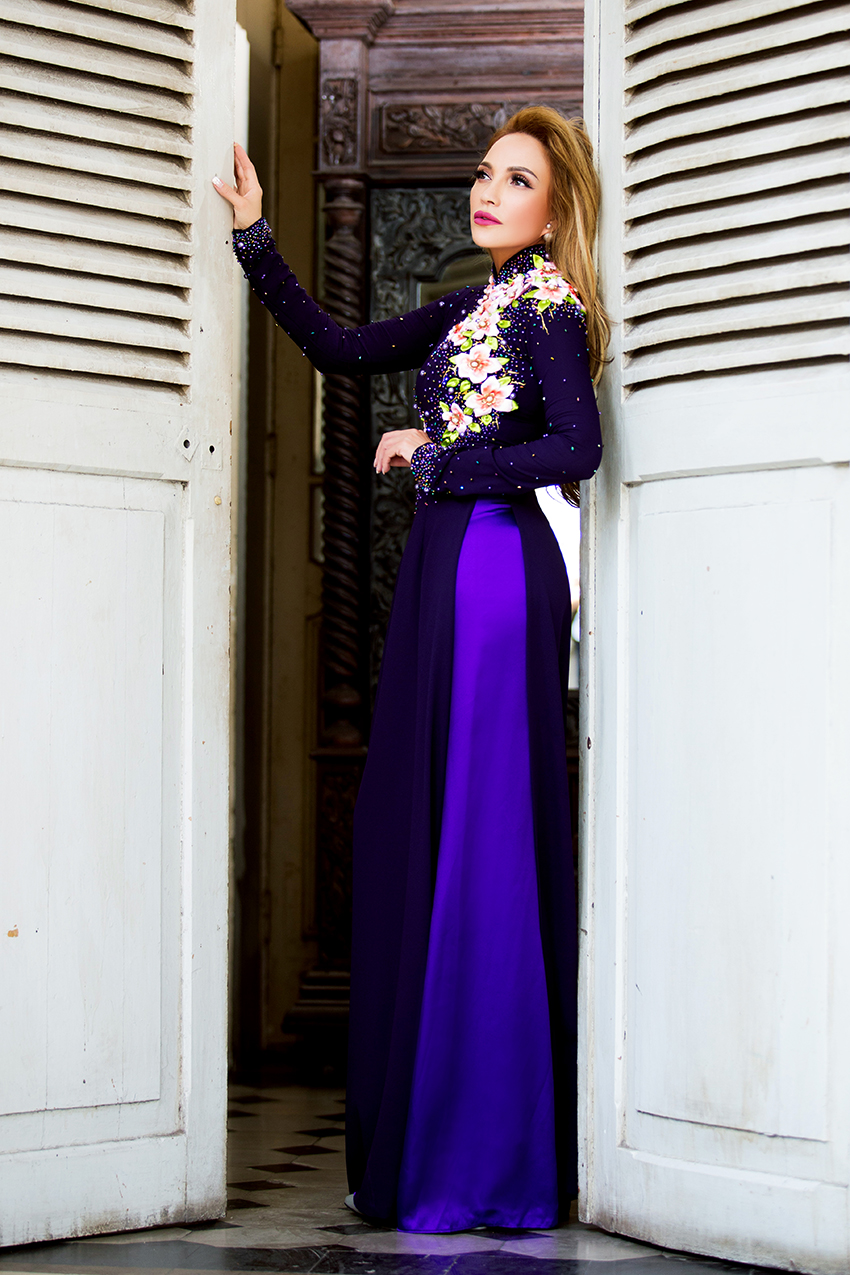 Người đẹp khoe đường cong với tà áo dài tím