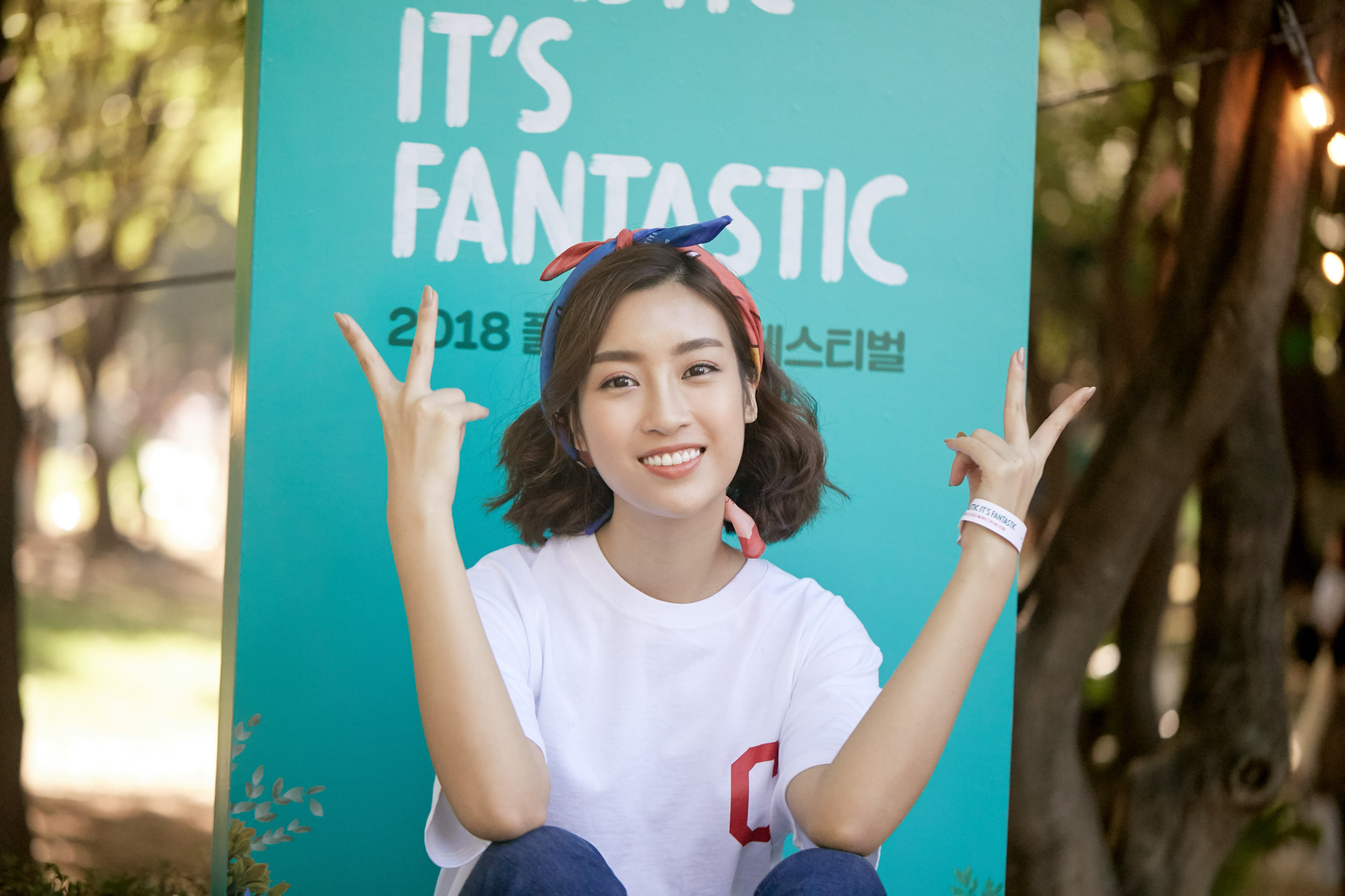 Không cần váy áo lộng lẫy kiêu kỳ, chỉ với outfit đơn giản này, Đỗ Mỹ Linh đã hoàn toàn thu hút sự chú ý của khán giả. Cô cùng Phương Ly còn cài băng đô vải tai thỏ, nhìn xinh xắn, đáng yêu hết mức.