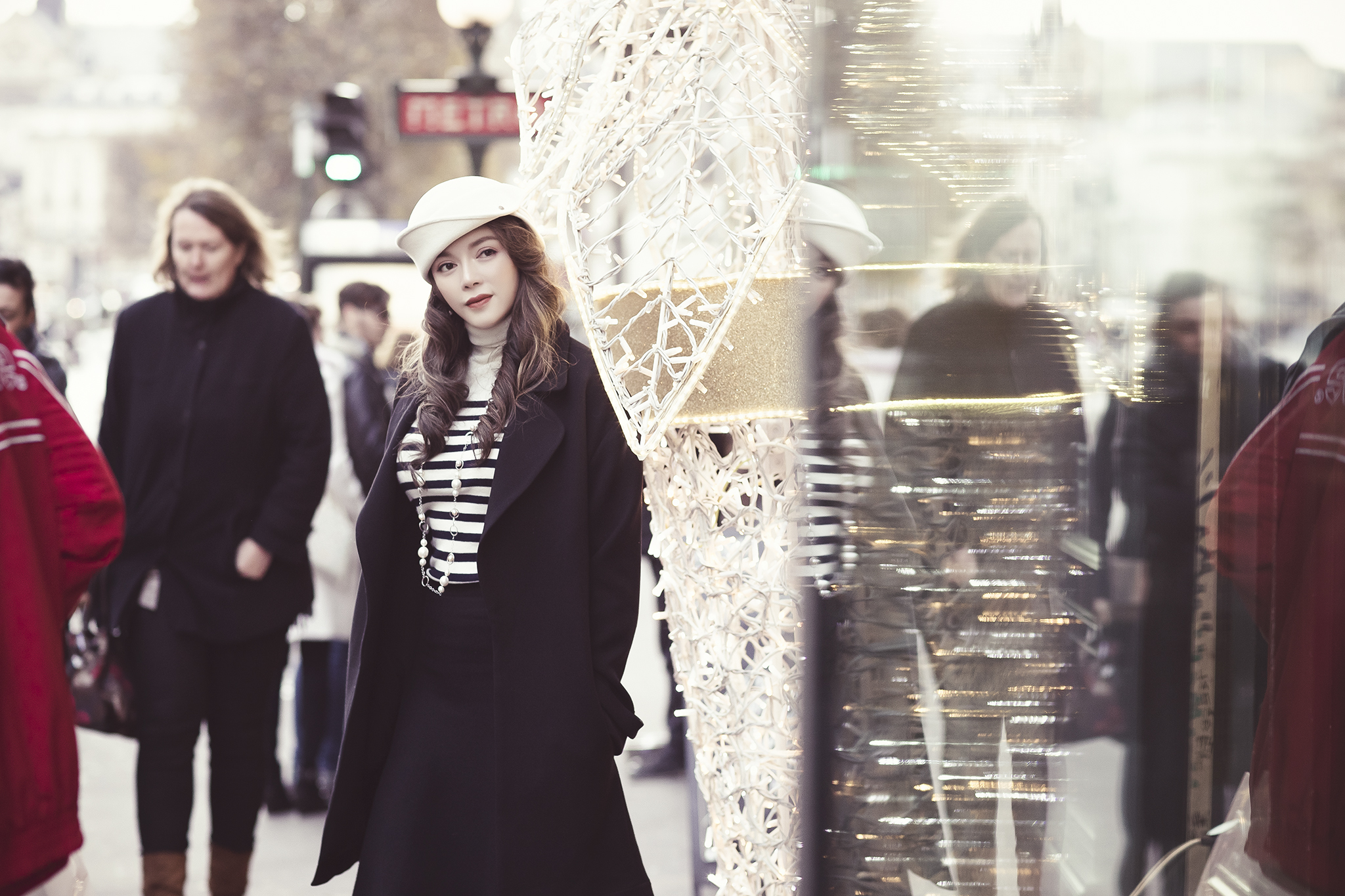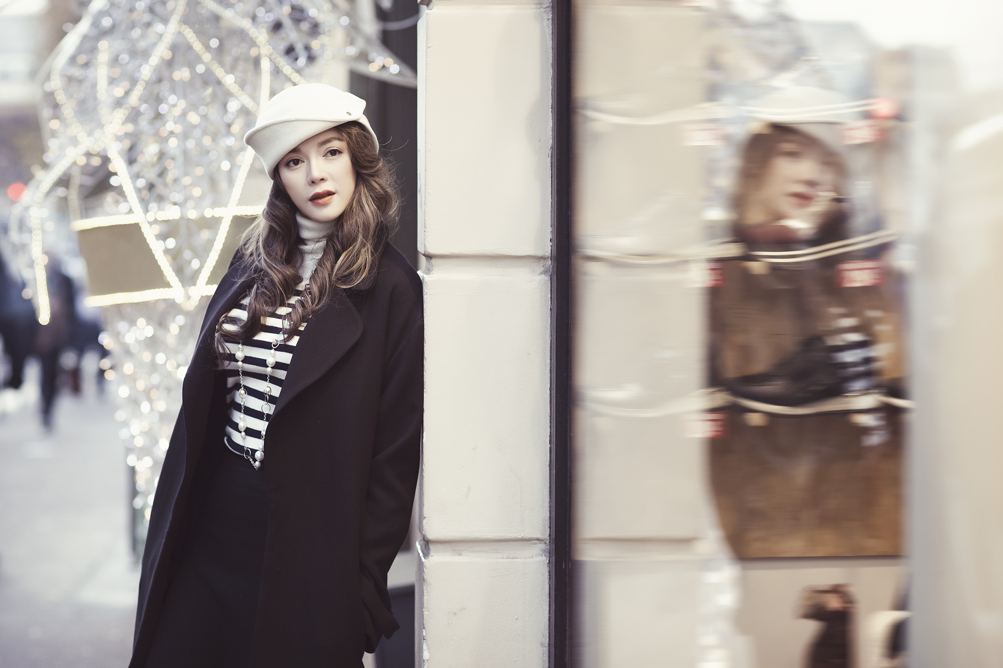 Chỉ cần khoác thêm chiếc áo dạ, cùng nhấn nhá phụ kiện dây chuyền, Lý Nhã Kỳ đã có được một outfit thanh lịch cho những ngày đầu đông.