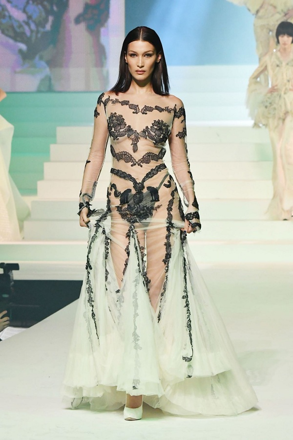 Bella Hadid táo bạo diện váy xuyên thấu mong manh trong show Jean Paul Gaultier