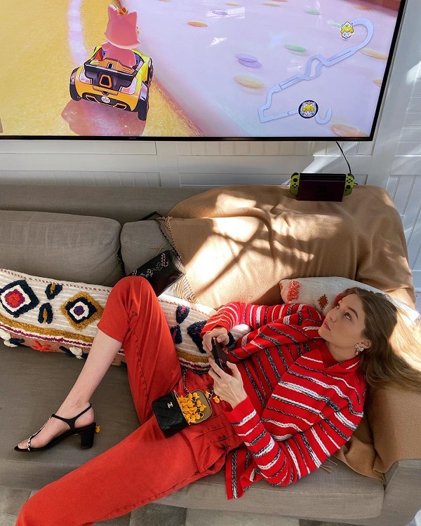 Gigi Hadid dùng phòng khách nhà mình tự lên concept cho trang phục mà Chanel gửi đến nhà cô