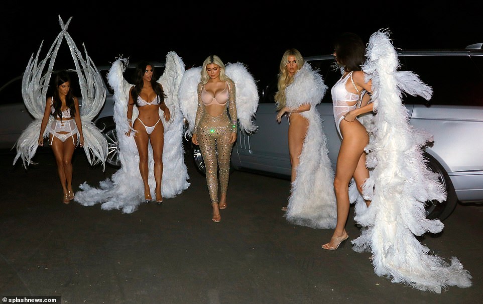 Dàn chị em tiếng tăm tại Hollywood Kylie Jenner, Khloe Kardashian, Kim Kardashian, Kendall Jenner và Kourtney Kardashian vừa hóa thân thành dàn mỹ nhân nội y dự hội Halloween tại Los Angeles, California vào tối qua.