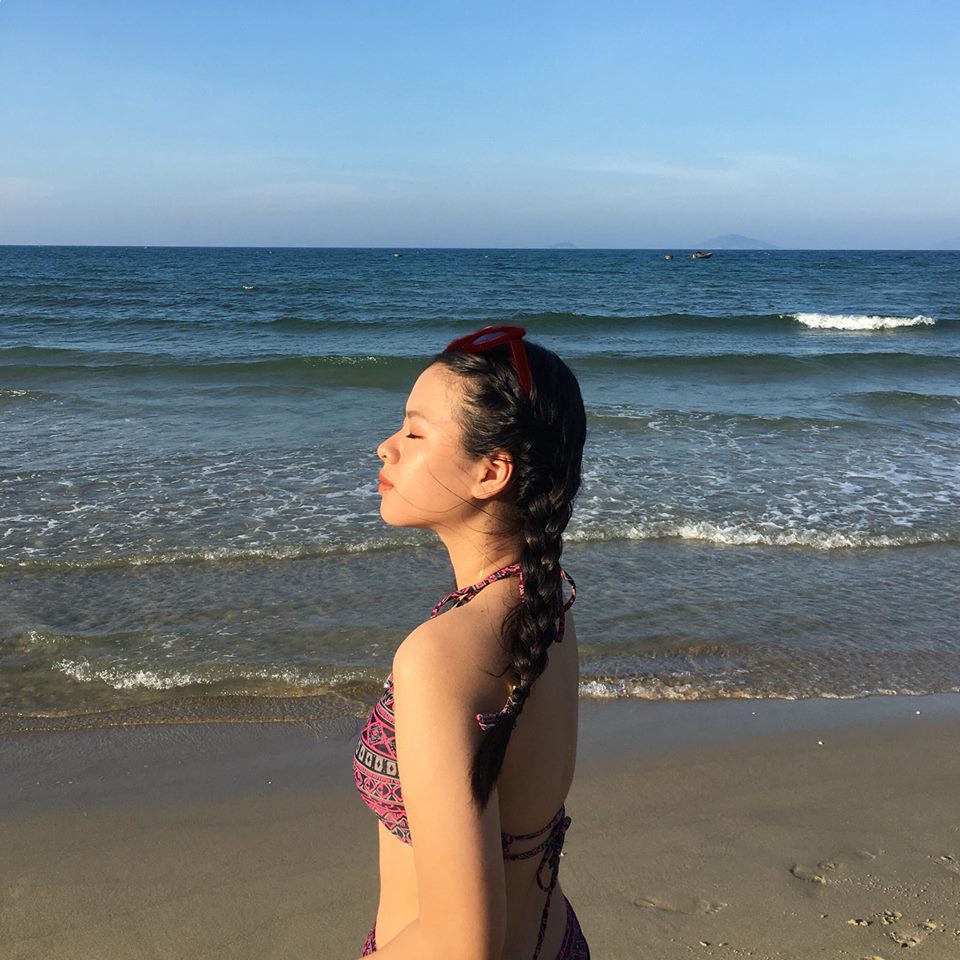 Dù mới 14 tuổi nhưng cô bé sở hữu vóc dáng phổng phao, Hồng Khanh xuất hiện khá quyến rũ trong trang phục tắm.