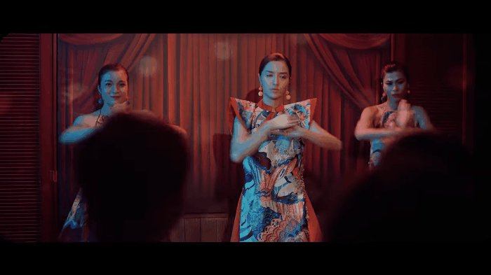 Ngay cả cách trang điểm, làm tóc cùng chi tiết sử dụng hoa thiên điểu cài đầu cũng hoàn toàn phù hợp, khiến MV tăng thêm chất liêu trai.