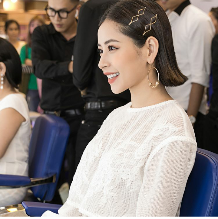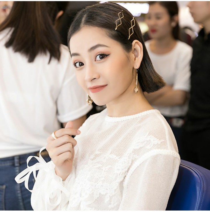 Lối trang điểm khá tự nhiên và mái tóc kẹp gọn gàng phù hợp với set đồ đơn giản nhưng vẫn rất xinh đẹp và thu hút.