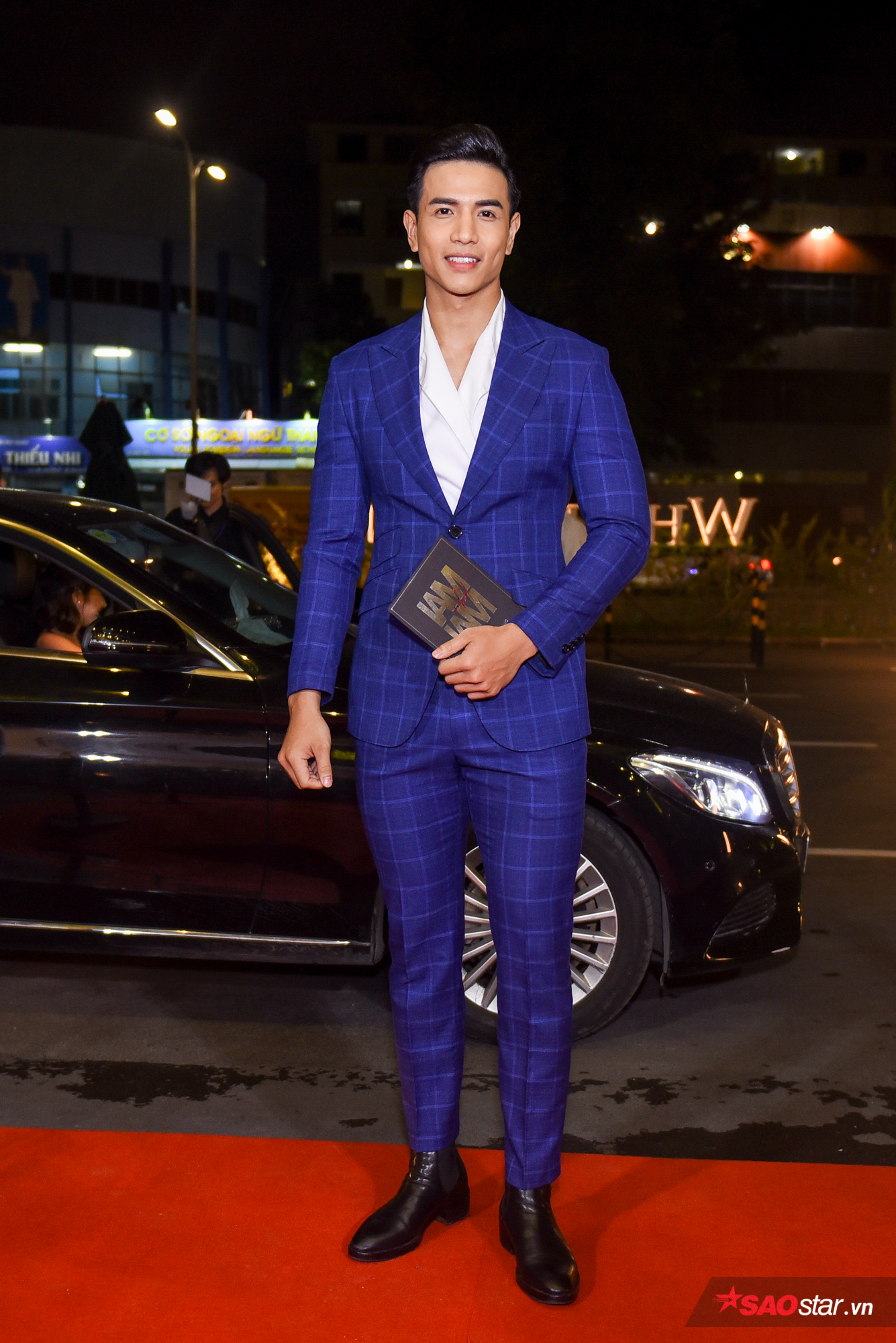 Erik sử dụng chiếc quần ánh bạc này để tạo điểm nhấn giữa sự kiện.