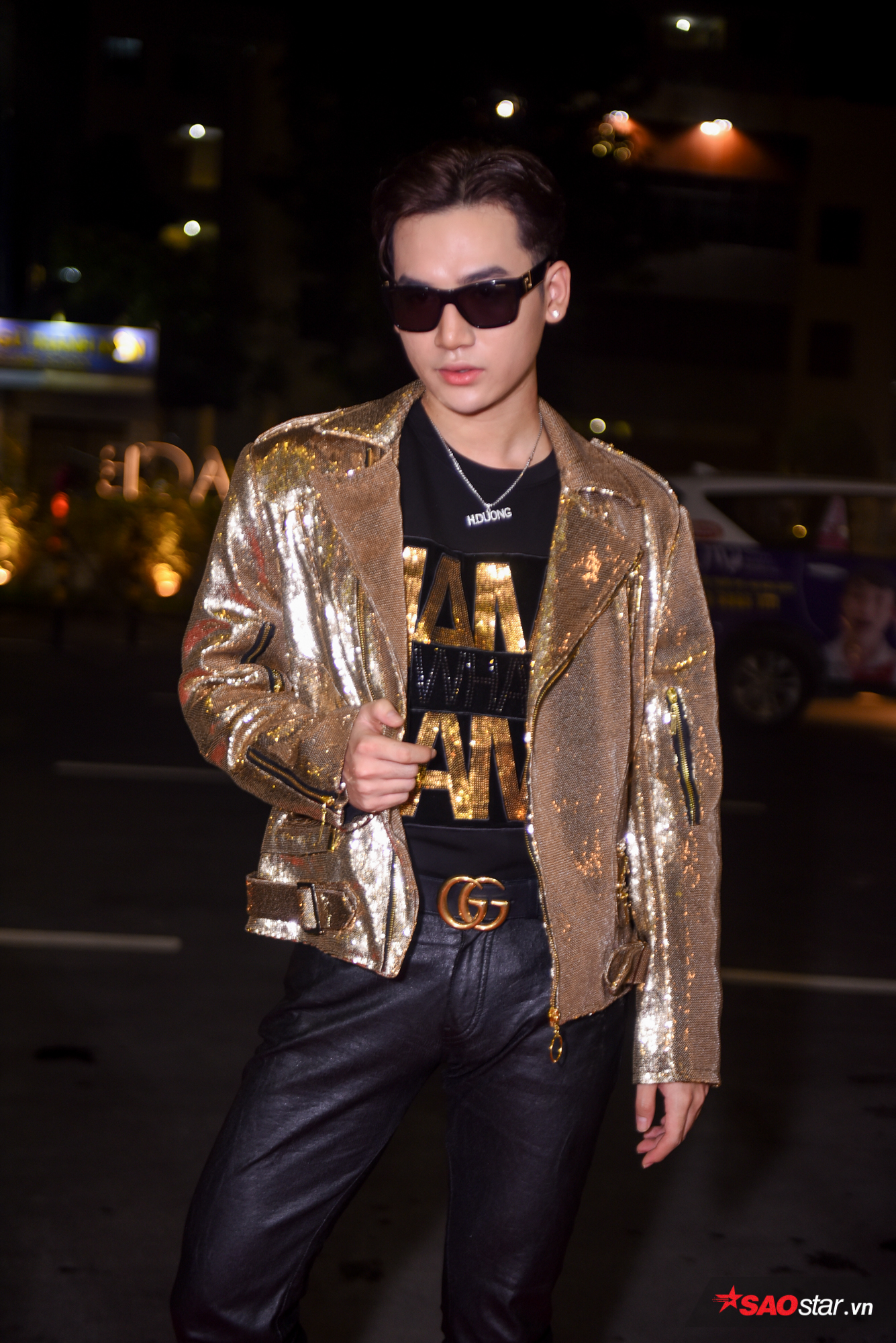 Ali Hoàng Dương cũng sử dụng gam màu vàng đồng sequin để trở nên thu hút.