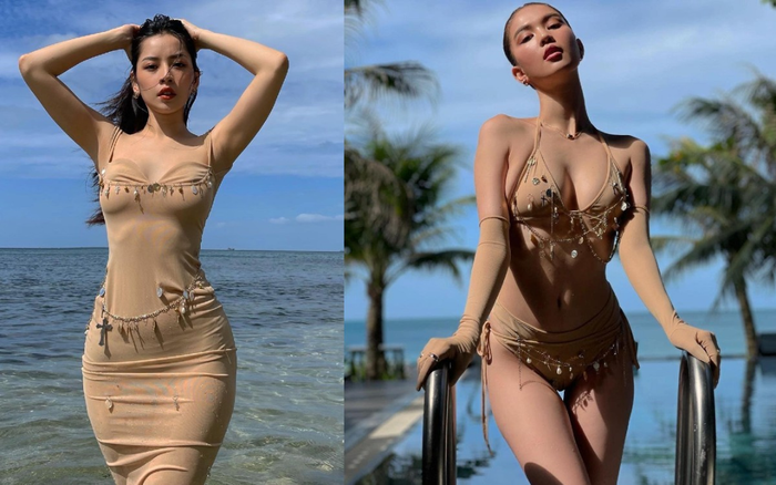 Chi Pu update hình ảnh pose dáng vô cùng nóng bỏng trong bộ váy màu be ôm sát người với những items phụ kiện giống của người chị em Ngọc Trinh từng mặc trước đó.