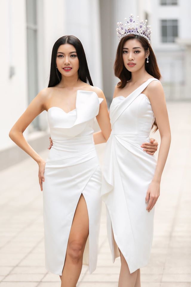 Mới đây nhất khi tham gia giao lưu với thính giả của đài Tiếng nói nhân dân TP. HCM, Khánh Vân tiếp tục đụng độ không khoan nhượng với Hoa hậu Lương Thùy Linh trong chiếc váy trắng ngắn trên gối khoe chân dài miên man.