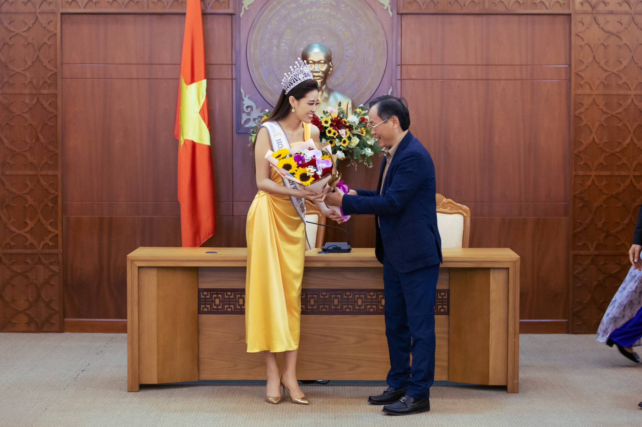 Đôi giày được diện lại lần thứ hai hôm sau đêm đăng quang khi có chuyến thăm lãnh đão tỉnh Khánh Hòa.