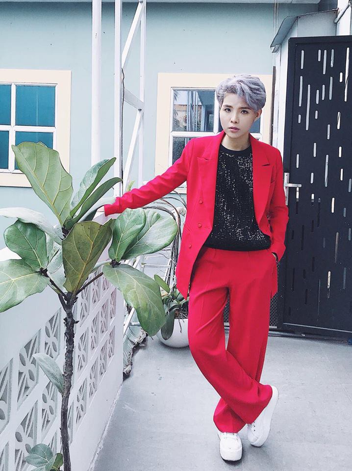 Vest đỏ là một trong những outfit mà Cát Tường yêu thích nhất. Cát Tường “biến hóa” khá nhiều kiểu dáng vest với sắc màu rực rỡ này.