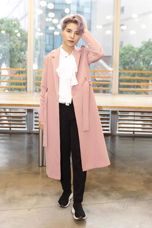 Theo đuổi phong cách thời trang tom boy nhưng Cát Tường ăn mặc vẫn có nét mềm mại riêng, không quá cứng nhắc. Ngoài những bộ vest kiểu dáng cứng cáp, những bộ mềm mại với quần ống suông thế này cũng là một sở thích của Cát Tường.
