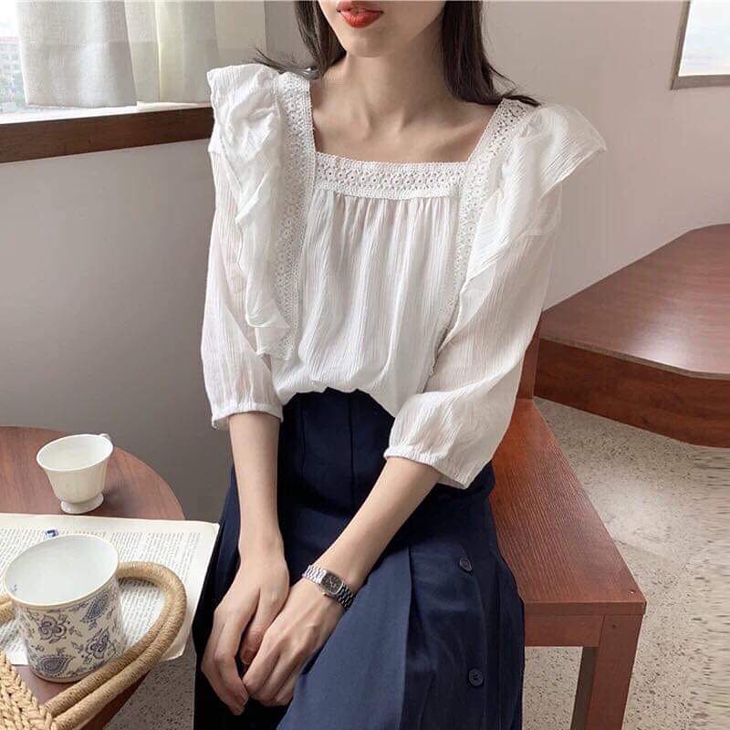 Các nàng hẳn đã rất quen thuộc với những kiểu dáng Blouse cổ tròn, cổ tim thì trong năm nay một kiểu dáng mới tiếp tục thay thế “đàn chị” đi trước tạo nên sự bức phá và thu hút hầu hết phái nữ đó là kiểu dáng cổ vuông, tay bồng. Trước sự giao thoa giữa nét cổ điển và hiện đại, phần cổ áo được khoét rộng , vuông vức, tạo khoảng hở duyên dáng giúp các nàng khoe trọn được hàm xương quai xanh và tôn lên triệt để vòng 1.