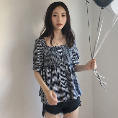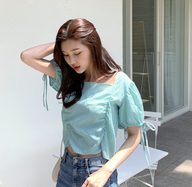 Không phải là một màu trơn, không phải kiểu dáng đơn giản nữa. Blouse giờ đây với thiết kế caro xanh trắng, thắt nơ hai bên tay bồng và phần nhún hai bên phần áo tạo độ “gợn sóng” khiến cho chiếc áo vô cùng nổi bật và khác biệt.