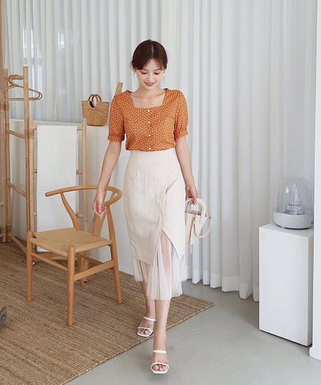 Áo Blouse với một màu trắng tinh khiết khi kết hợp cùng chiếc chân váy chắc chắn sẽ khiến các nàng cũng trông thanh khiết không hề thua kém màu áo. Một set đồ nhìn trông có vẻ đơn giản nhưng lại không hề “đơn giản” chút nào.