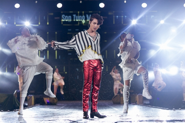 Tuy nhiên, trong một diễn biến khác, Sơn Tùng trong đêm nhạc V Live Summer Fest của chúng ta lại chọn một thiết kế có phần giản dị hơn nhiều, chững chạc theo style menswear khá đơn giản. Chiếc áo blazer với màu ghi tối giản cùng phần cầu vai với độ phồng vừa phải tạo nên sự tinh tế cho giọng ca Lạc trôi. Có lẽ, đã rất lâu rồi người hâm mộ mới nhìn thấy hình ảnh của một Sơn Tùng khá bình dị trên sân khấu như thế này.