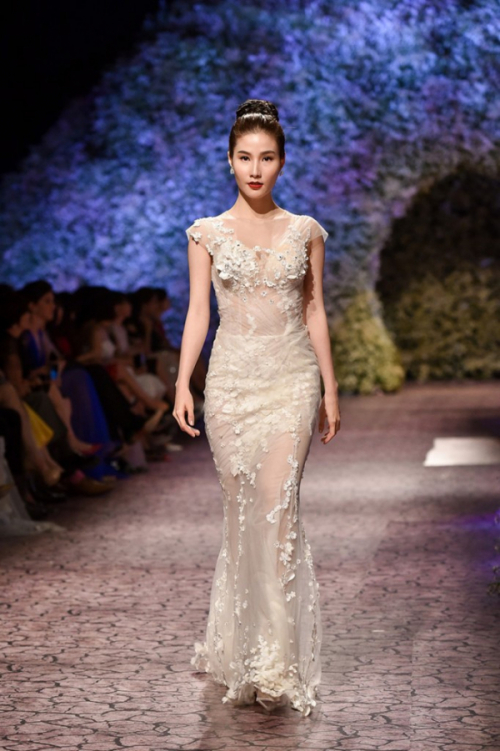 Những thiết kế của anh đều gây ấn tượng với kĩ thuật đính kết đá, cườm tinh tế và vô cùng tỉ mỉ trên nền chất liệu vải xuyên thấu.
