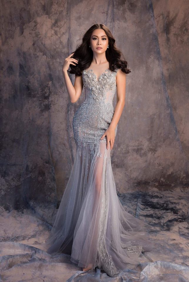 Đầm dài cùng họa tiết ren pha lưới, đuôi cá cũng là lựa chọn không thể thiếu trong phong cách thời trang dạo gần đây của thí sinh tiềm năng đến từ cuộc thi Hoa hậu Hoàn Vũ.