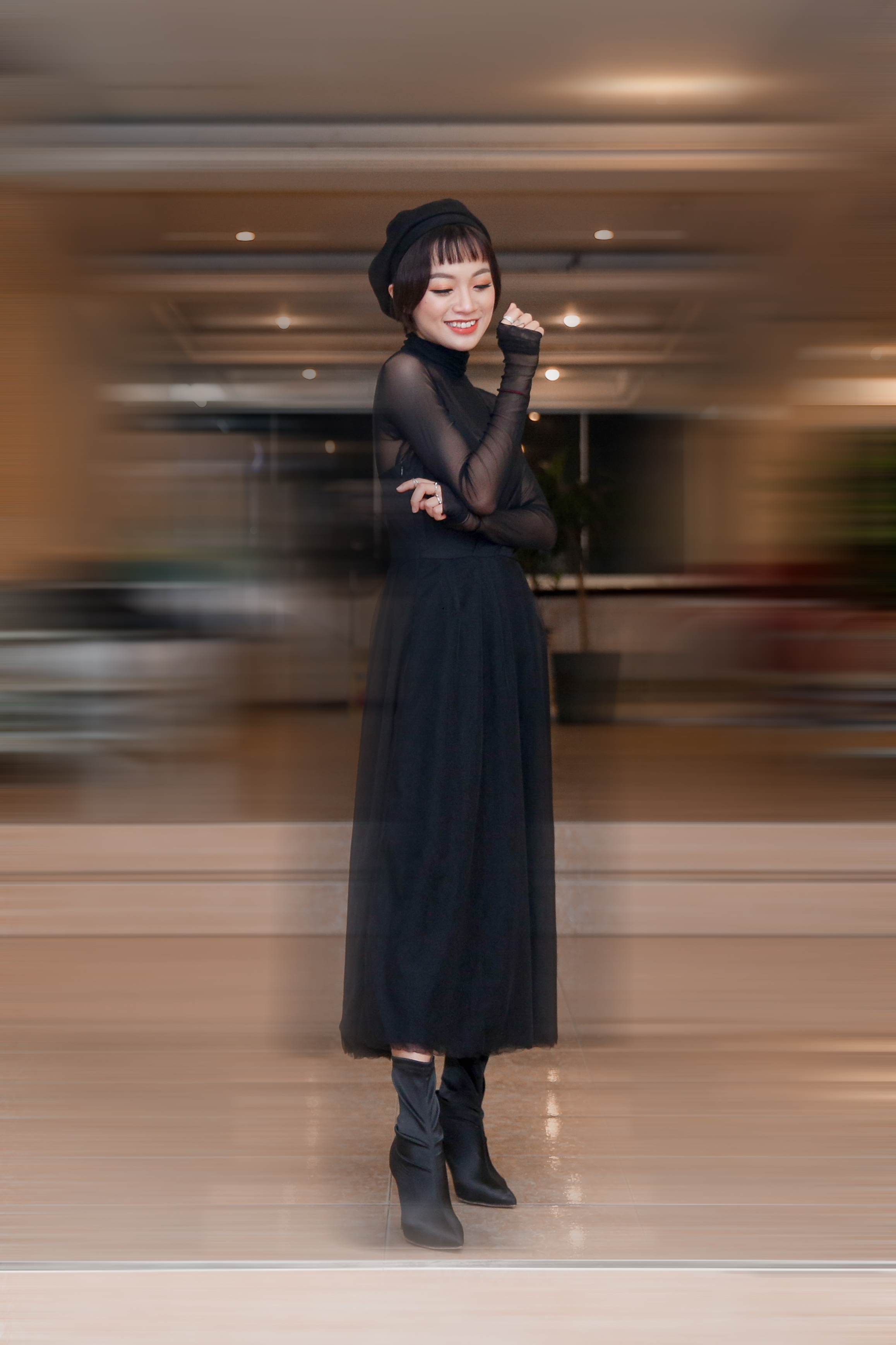 Á quân Giọng hát Việt 2018 - Gia Nghi đem đến cái nhìn đáng yêu, ngọt ngào với bộ cánh tông đen được diện theo style layer cá tính.