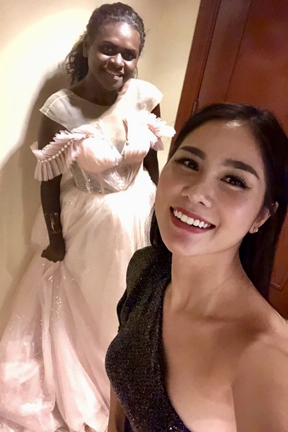 Bước vào đêm thi Bán kết, Hoài Sa tiếp tục nhường váy cho Hoa hậu Mỹ. Đây là hành động vô cùng đẹp của đại diện Việt Nam trên đấu trường nhan sắc được bạn bè quốc tế cảm kích.