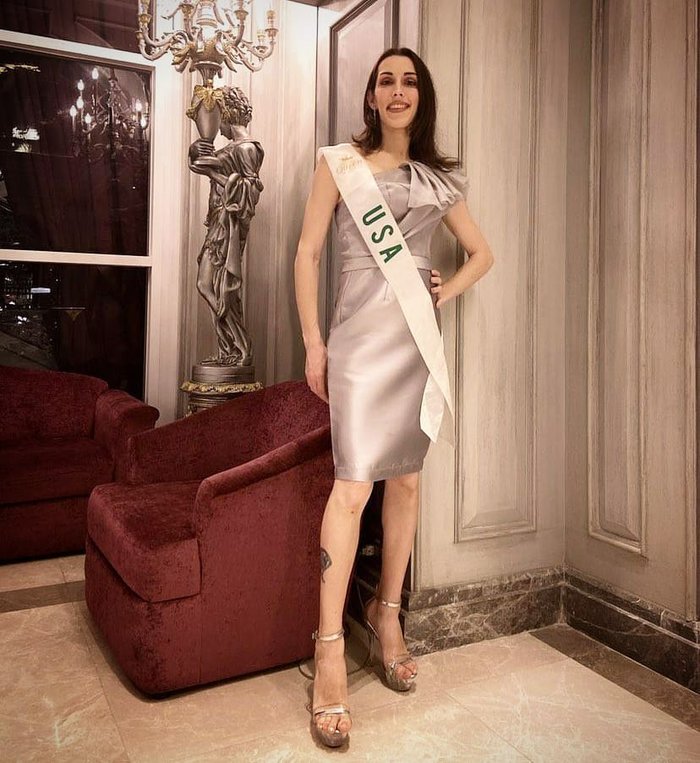 Đại diện Mỹ trong chiếc giày cao gót vừa vặn, xinh xắn mà Hoài Sa đã tặng. Cô cũng không quên gửi lởi cảm ơn đến người bạn tốt bụng.