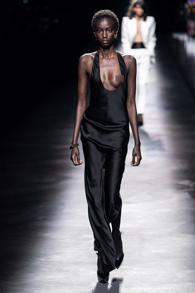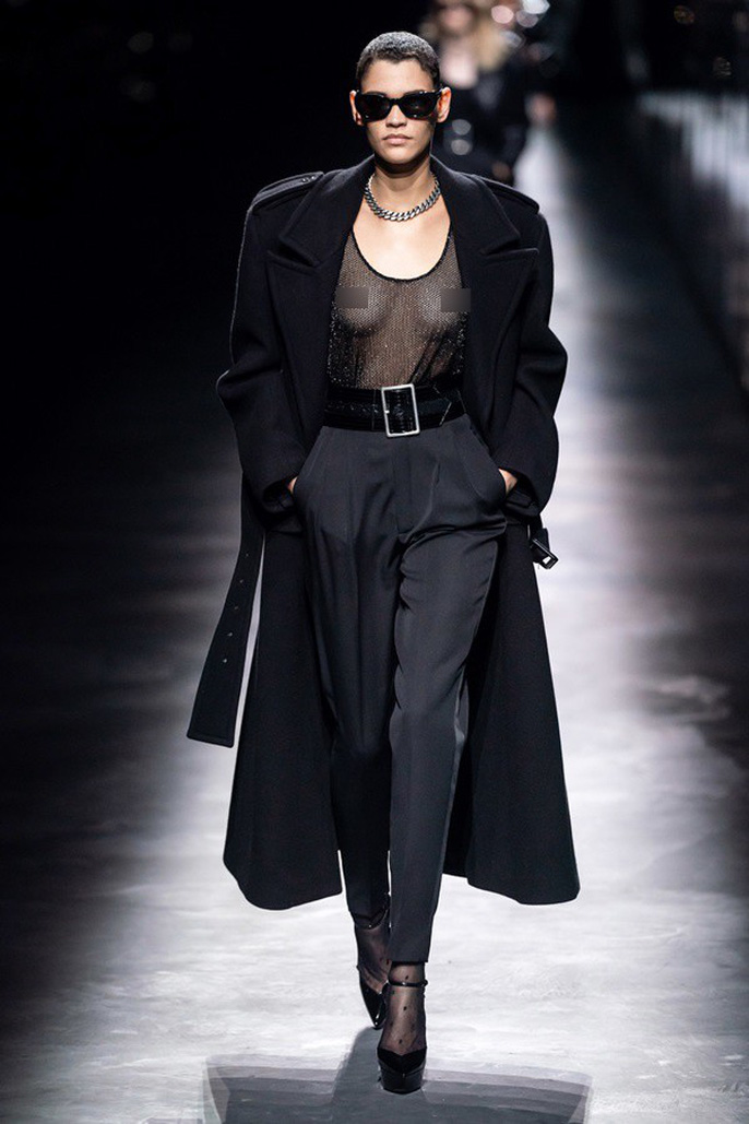 Bộ sưu tập Thu /Đông 2019-2020 mới nhất của thương hiệu lâu năm Yves Saint Laurent vừa được trình làng tại Tuần lễ thời trang Paris thu hút sự chú ý, dàn mẫu lạnh lùng sải bước trong mốt “không nội y” với thông điệp giải phóng cơ thể và nữ quyền trong cách ăn mặc tại không gian sân khấu tối đen để nhường chỗ cho những thiết kế phản quang khác trong bst.