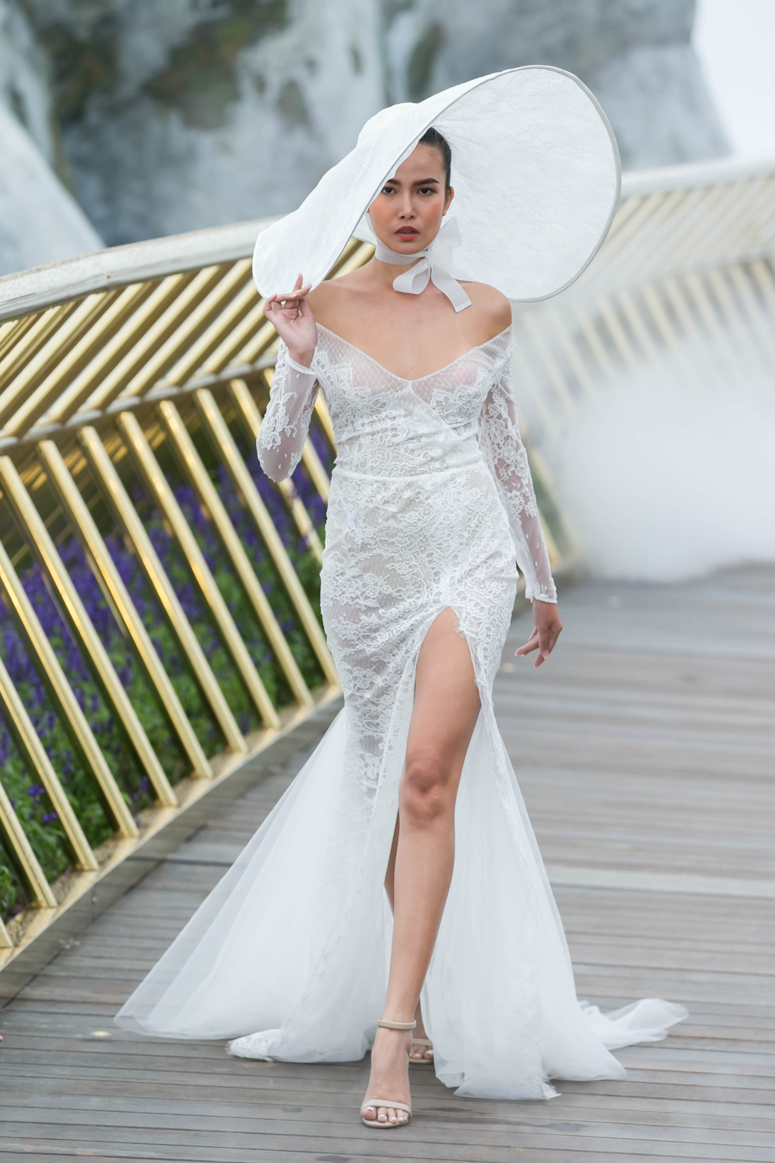 Người đẹp gây ấn tượng với phong thái catwalk tự tin, nét mặt biểu cảm thể hiện trọn vẹn nét thanh xuân rực rỡ của một cô dâu trong ngày cưới.