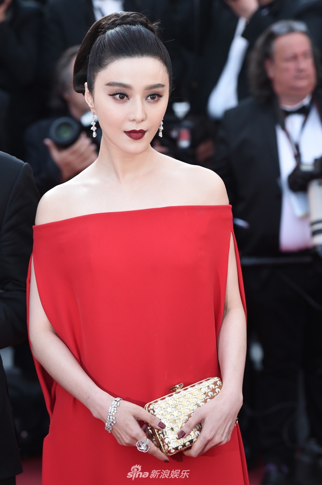 Phạm Băng Băng tỏa sáng trong chiếc đầm trễ vai màu đỏ nổi bật. Có thể thấy, người đẹp đã hoàn toàn “giấu nhẹm” đi khuyết điểm bắp tay nhờ thiết kế này.