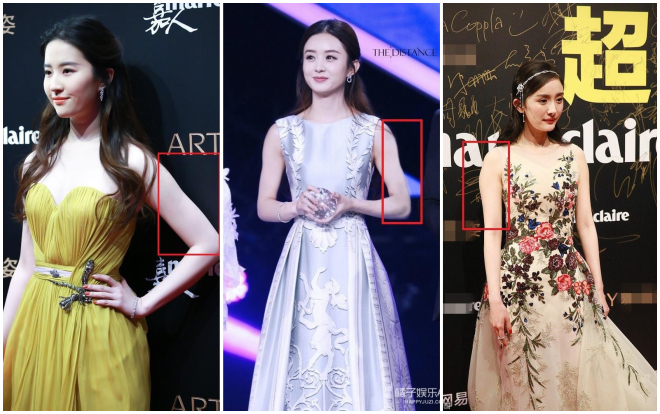 Không ít lần, gương mặt thương hiệu hàng đầu Cbiz đã phải muối mặt vì lộ mỡ thừa phần bắp tay khi diện các trang phục hở vai, áo ống. Phạm Băng Băng cũng không phải là người duy nhất mắc khiếm khuyết cơ thể này. Ngay đến Triệu Lệ Dĩnh, Dương Mịch thường nằm trong nhóm sao gầy mà đôi khi cũng lộ phần tay to kém săn chắc.
