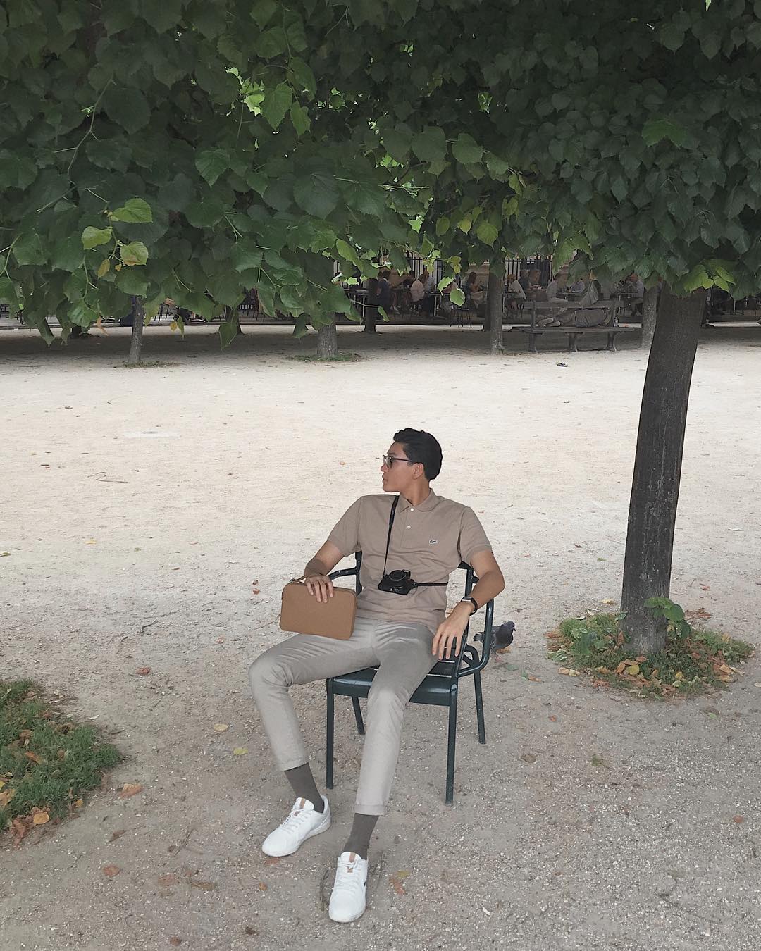 Quang Đại đưa ra gợi ý khá hay ho cho các chàng trai khi xuống phố: áo thun cổ polo phối cùng quần đồng màu và giày sneaker trắng, vừa đảm bảo trẻ trung nhưng vẫn cực kỳ thời thượng.