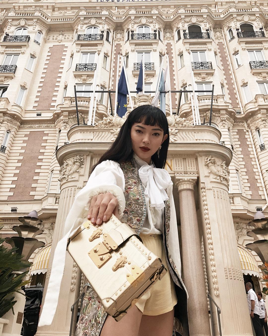 Đang vi vu tại Pháp dự show Louis Vuitton, Châu Bùi tiếp tục chứng tỏ đẳng cấp mặc đẹp với cả cây đồ của hãng được mix, match cách thú vị, kèm kiểu tóc mái ngang cao trên lông mày đầy ấn tượng.
