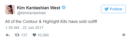 Và sau đó khai báo trên Twitter rằng toàn bộ 300.000 bộ mỹ phẩm đã sạch bách khi đồng hồ cô chưa điểm nổi 3 giờ. Được biết, Kim đã đếm hơn $14,4 triệu (khoảng 30 tỷ đồng VNĐ) cho số son phấn tung ra. Một con số khủng khiếp!