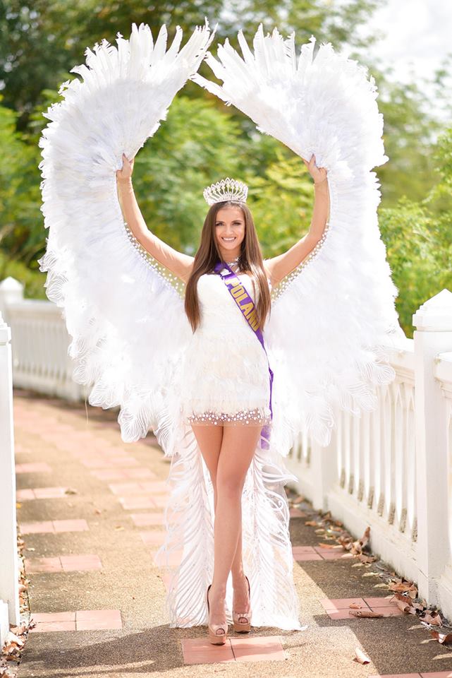 Đại diện đến từ Ba Lan gây ấn tượng với trang phục trắng muốt, đính đôi cánh khổng lồ phía sau.